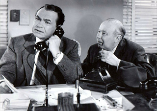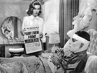 DOUBLE INDEMNITY (1944): Barbara Stanwyck—in a platinum blonde wig—plays Phyllis Dietrichson—the consummate femme fatale who lures insurance salesman and all-around chump Walter Neff (Fred McMurray) into a plot involving murder and insurance fraud. His friend, and insurance adjuster, Barton Keyes (Edward G. Robinson) smells a rat. Nominated for seven Oscars: Best Actress in a Leading Role; Best Cinematography, Black-and-White; Best Director; Best Music, Scoring of a Dramatic or Comedy Picture; Best Picture; Best Sound, Recording; and Best Writing, Screenplay. Dir. Billy Wilder