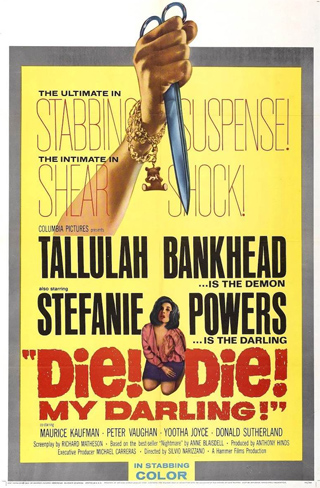 DIE! DIE! MY DARLING! (1965): A religious fanatic (Tallulah Bankhead) imprisons her late son's “sinful” fiancée (Stefanie Powers) after she announces her intentions to marry. Dir. Silvio Narizzano