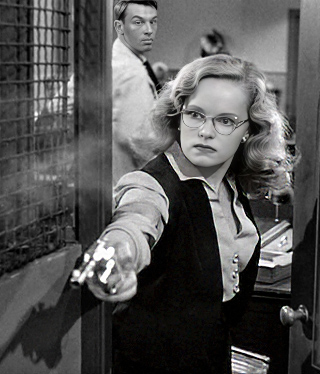 MURDER, MY SWEET (1944): The film that graduated Dick Powell from romantic musical lead to noir tough guy. Raymond Chandler’s detective and knight errant, Philip Marlowe's (Powell) search for a singer name Velma, leads him through a tangled web of blackmail and murder. Along the way, he finds himself embroiled with a wealthy man’s unscrupulous gold-digging wife (Claire Trevor) and the step-daughter that despises her (Anne Shirley). Mike Mazurki gives a standout performance as the mentally challenged and extremely physically powerful ex-con that hires Marlowe to find Velma. “Cute as pants.” Dir. Edward Dmytryk