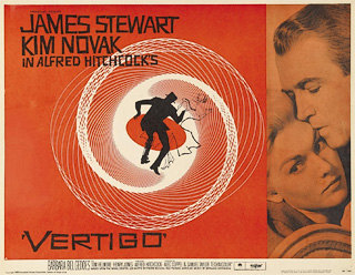 VERTIGO (1958): An old friend hires ex-cop Scotty (Jimmy Stewart) to follow his beautiful but emotionally disturbed wife (Kim Novak) through the gorgeously shot streets of San Francisco. Stewart gives an intensely dark performance as Scotty spirals further and further into romantic obsession. Dir. Alfred Hitchcock